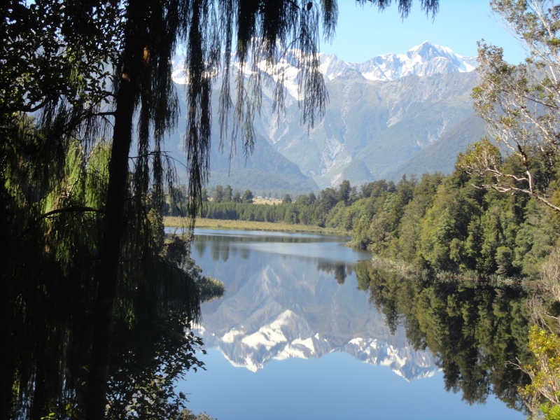 Lake Matheson is on the way back to civilization from Gillespie Beach where we had stayed the night. It is known for its reflective views of the South Alps and particularly of Mt. Tasman and Mt. Cook, New Zealand's highest mountain: